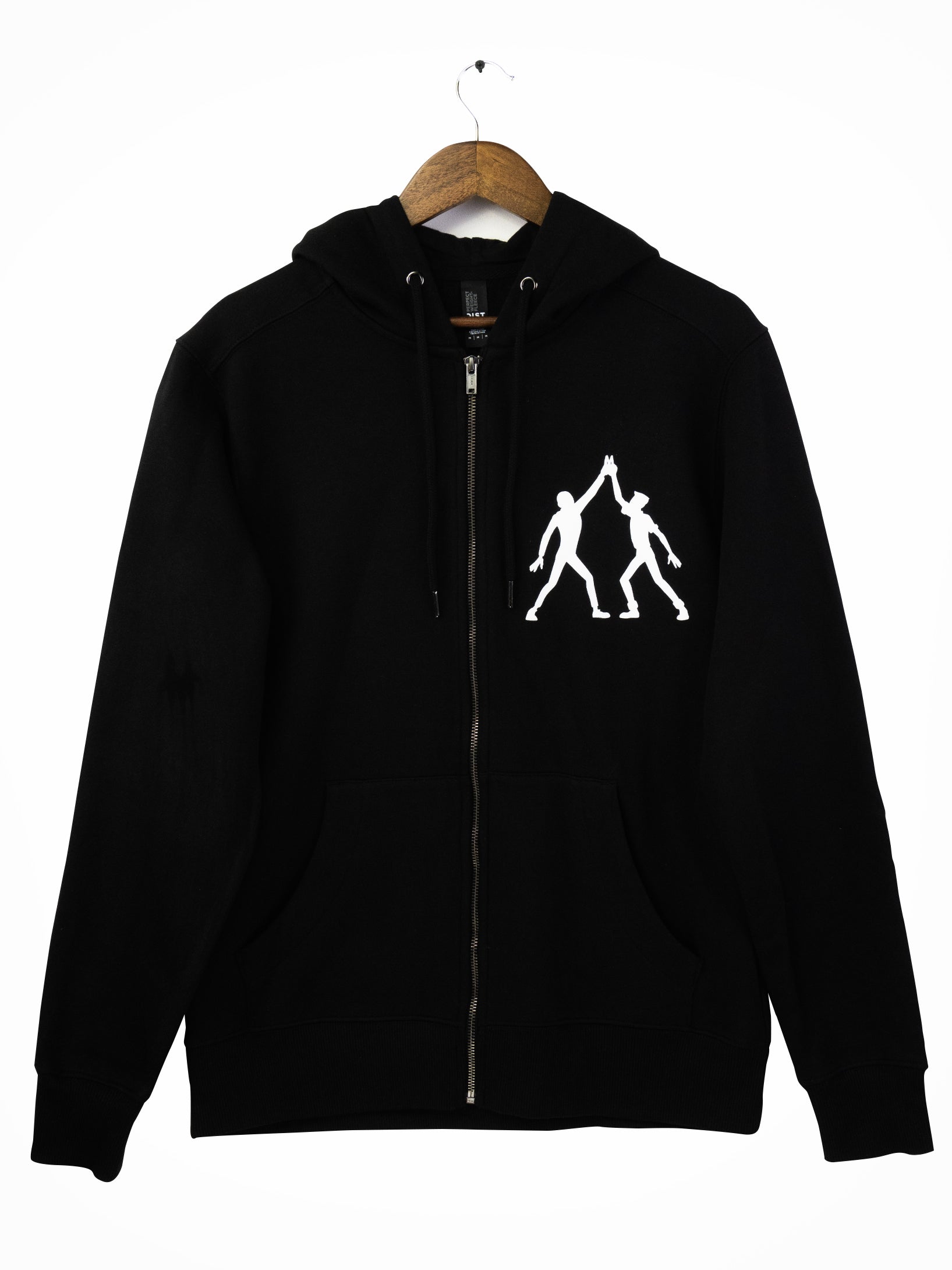 Winterized for your year-round comfort, the legendary “Go Team Venture!” silhouette and logo now grace our fleece finery featuring real grown-up sleeves guaranteed to extend all the way down to your wrists—plus a bonus hood so you can be all mysterious. Gird your extremities, seal in freshness, and bask in the warmth of your love for The Venture Bros. (and theirs for you) while projecting it to anyone standing in front of or behind you.